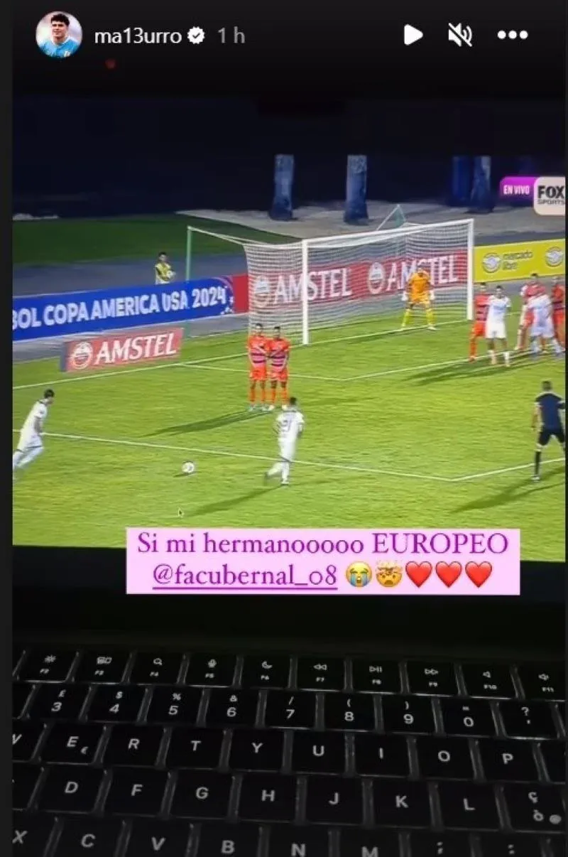"Sí mi hermano EUROPEO @facubernal_08", escribió Matturro sobre el gol del volante central violeta.