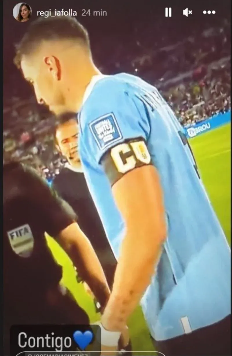 Regi Iafolla, la esposa de José María Giménez le envió un mensaje en pleno primer tiempo del partido entre la selección uruguaya y Bolivia por las Eliminatorias