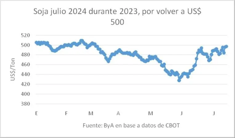 El informe del USDA y la Compañía Nacional de Abastecimiento de Brasil corrigieron al alza la producción de maíz de Brasil, que este año es récord. Llevó la cosecha de 125,72 a 127,77 millones de toneladas su previsión sobre la cosecha total de maíz 2022/2023. En síntesis, hay mucho maíz en Brasil, en plena cosecha. Luego vendrá una gran cosecha de EEUU y si el Niño llega como se espera volverá una muy abundante cosecha en el Mercosur el próximo otoño. En Chicago la referencia de maíz a la próxima cosecha está apenas por encima de los US$ 200. Los cultivos entran en la fase decisiva de floración así que el mercado climático, se acentuará en las próximas semanas.