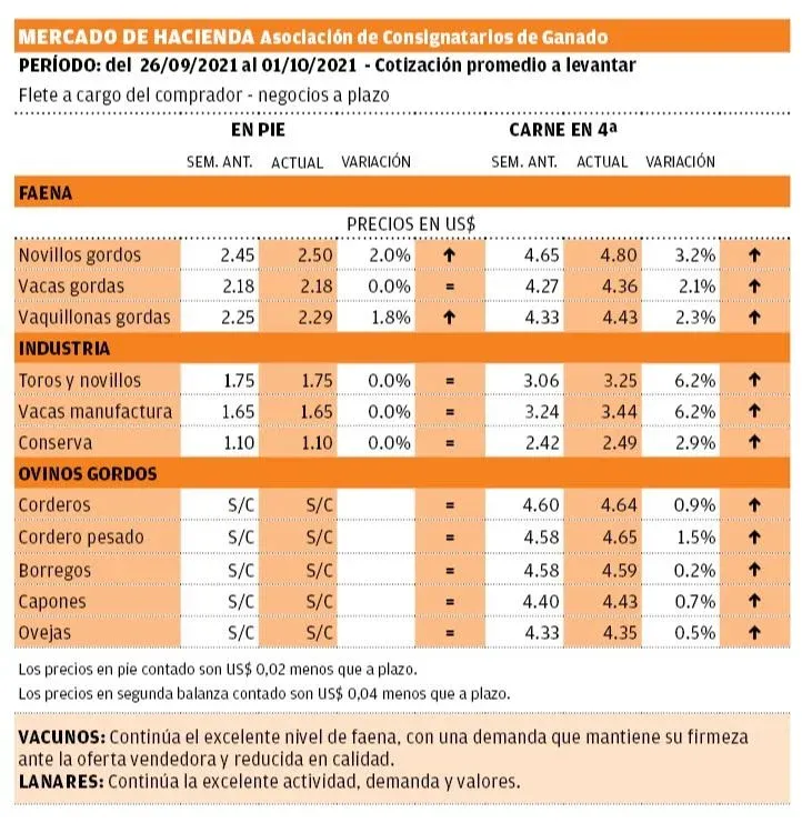 Las mejores vacas logran valores de punta de hasta US$ 4,50, y hay referencias de US$ 4,55 a US$ 4,60 por las vaquillonas bien pesadas, de calidad.