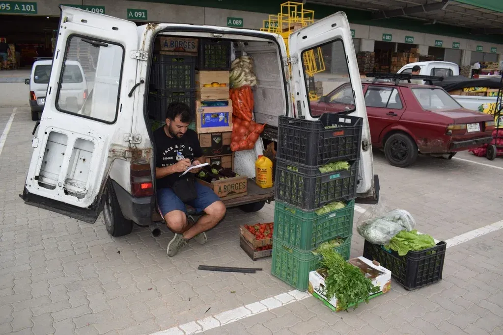 En la zona de la nave B del sector hortifrutícola un puestero que llegó desde el barrio Cerro para aprovisionarse, sentado en la caja de su camioneta, hacía cuentas tras las compras.