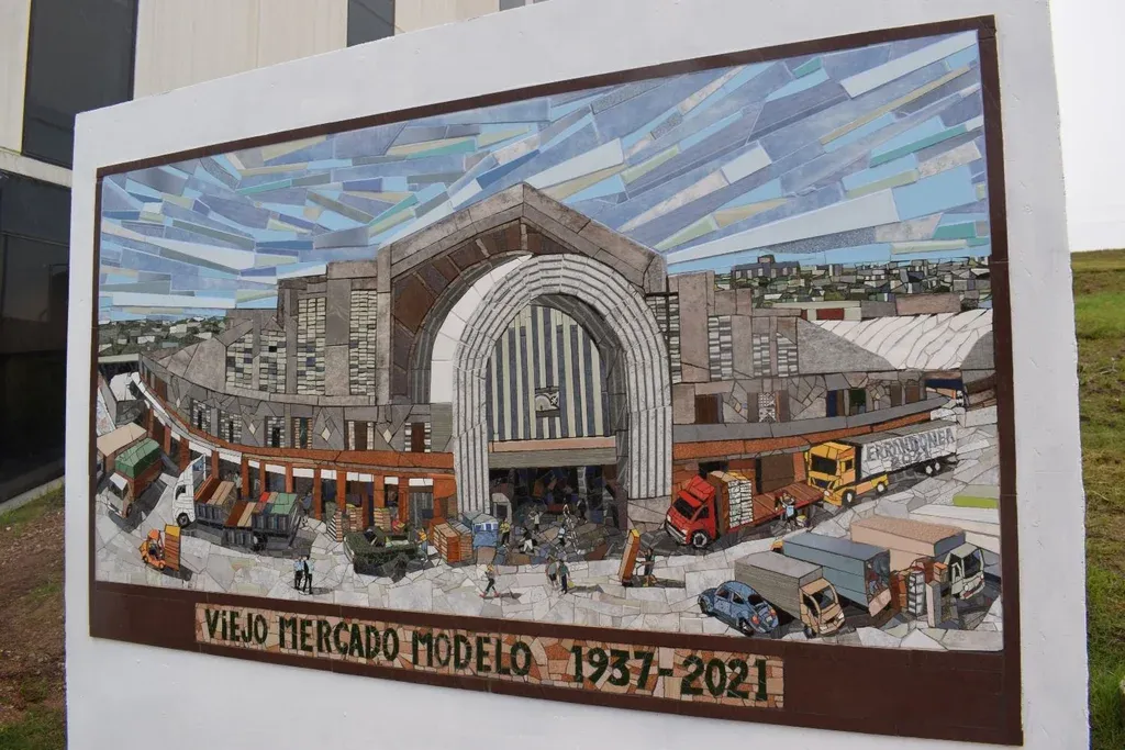 Juan Samuelle El viejo Mercado Modelo, presente, en un mural al costado del Edificio Administrativo. Hay que caminar más
