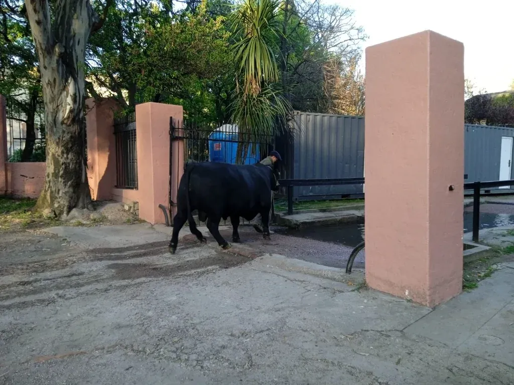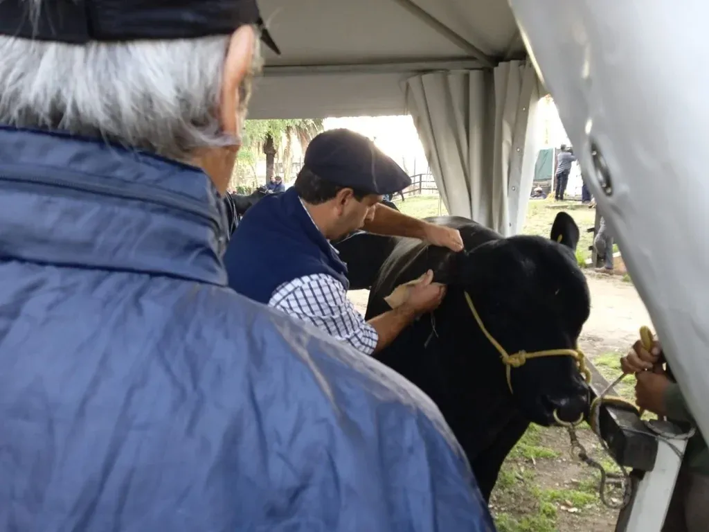 Analía Pereira El toro fue revisado por técnicos del MGAP previo a ingresar. Junto a cinco ejemplares más de la cabaña (que participarán de las juras en varias categorías) el toro partió en un camión de Río Negro sobre la hora 18 del miércoles, para viajar durante la noche y ser de los primeros en ingresar al predio. Felipe Capurro, responsable de la cabaña, explicó a El Observador que se buscó eso para que los animales puedan descansar con tranquilidad antes del inicio de la muestra.