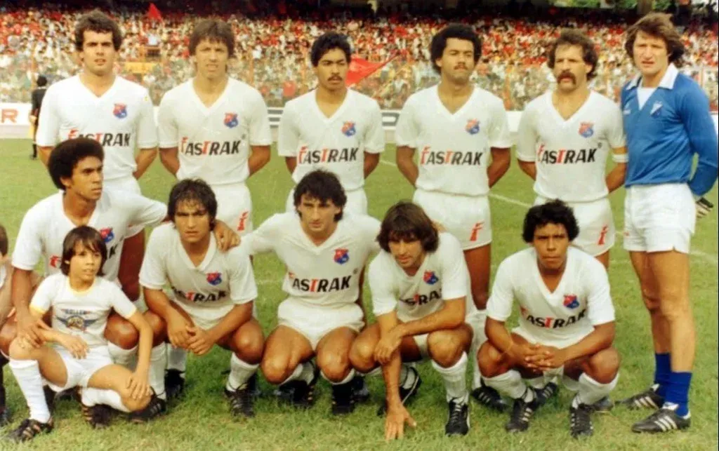 Independiente Medellín 1983: Rafael Villazán, Juan Ortiz, León Villa, Pablo Jaramillo, Alvaro Escobar, Carlos Gay; abajo, Jorge Olaechea, Carlos Gutiérrez, Héctor Chazarreta, Carlos Acevedo, Libardo Vélez