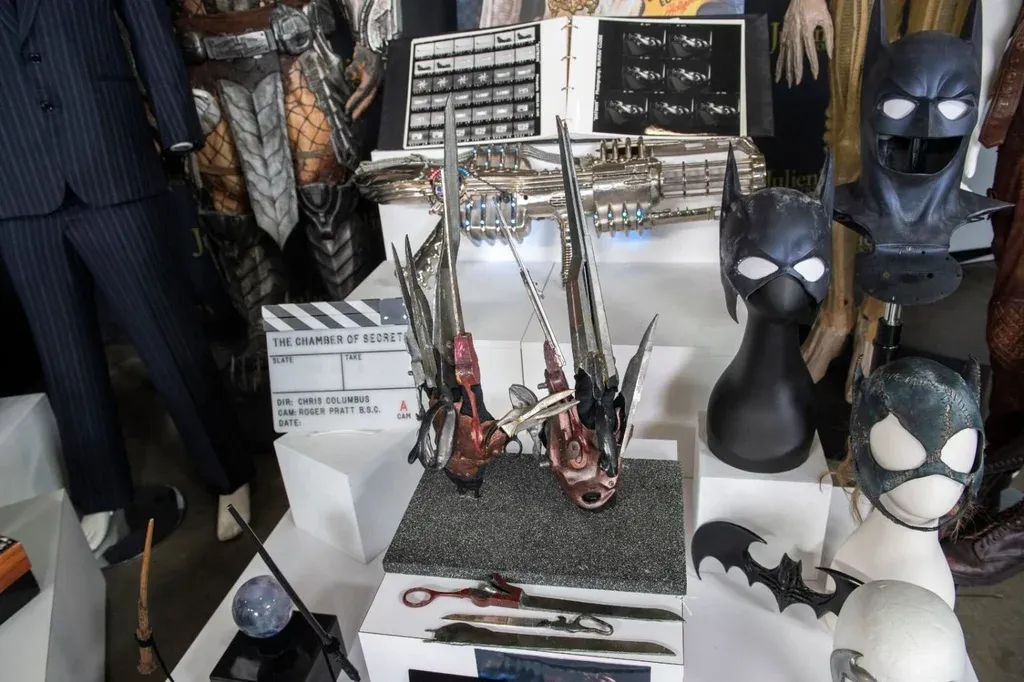 También se ofrecen muchos trajes y accesorios de la saga de Batman, desde la armadura de héroe nocturno que usó Val Kilmer en Batman eternamente (US$ 40.000 a US$ 60.000) hasta el rifle ficticio usado por Arnold Schwarzenegger en su papel del villano Sr. Frío, pasando por el antifaz de Michelle Pfeiffer como Gatúbela, que hará las delicias de los fetichistas.