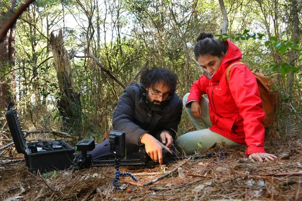 Florencia Barré y Guillermo Kloetzer grabando un hongo para el proyecto
