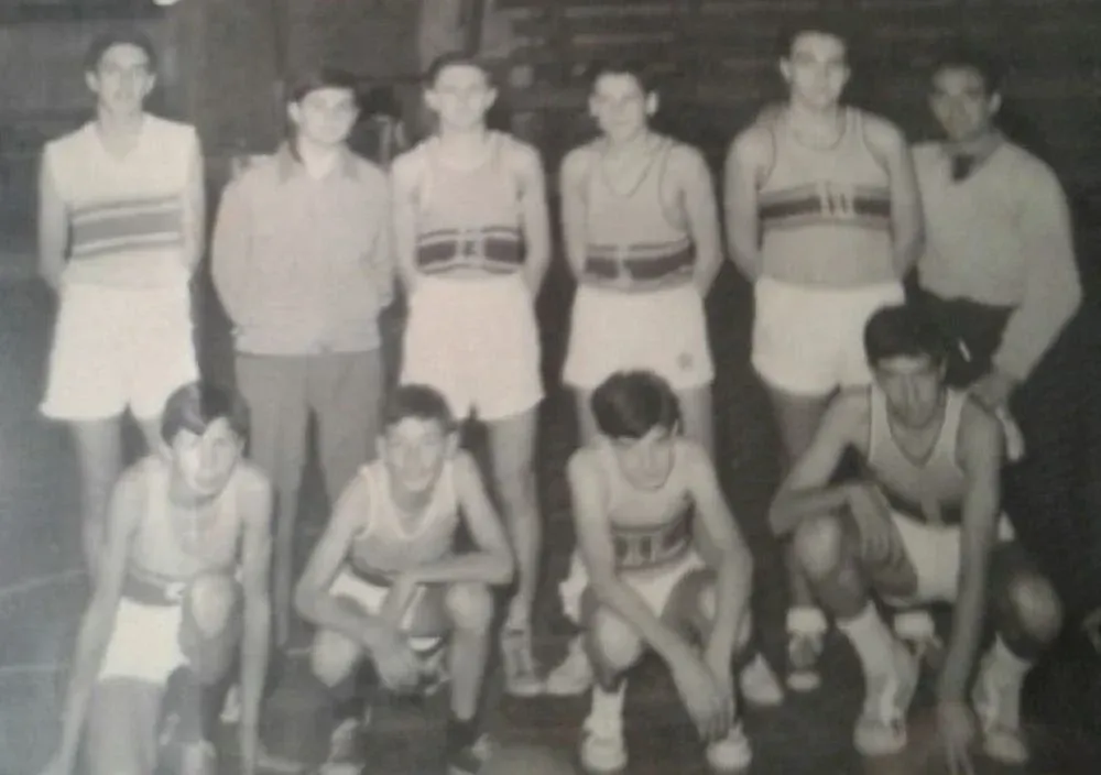 Una de las pasiones de Lorenzo Unánue es el básquetbol; hasta los 12 años defendió a Reducto y aquí se lo puede ver con esa camiseta; es el segundo de los de abajo desde la izquierda