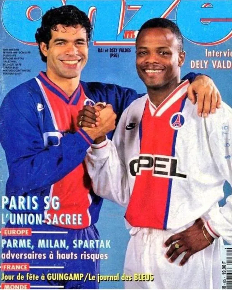 La tapa de la prestigiosa revistra deportiva francesa Onze, con Julio César Dely Valdés y el brasileño Raí, cuando defendían a Paris Saint-Germain