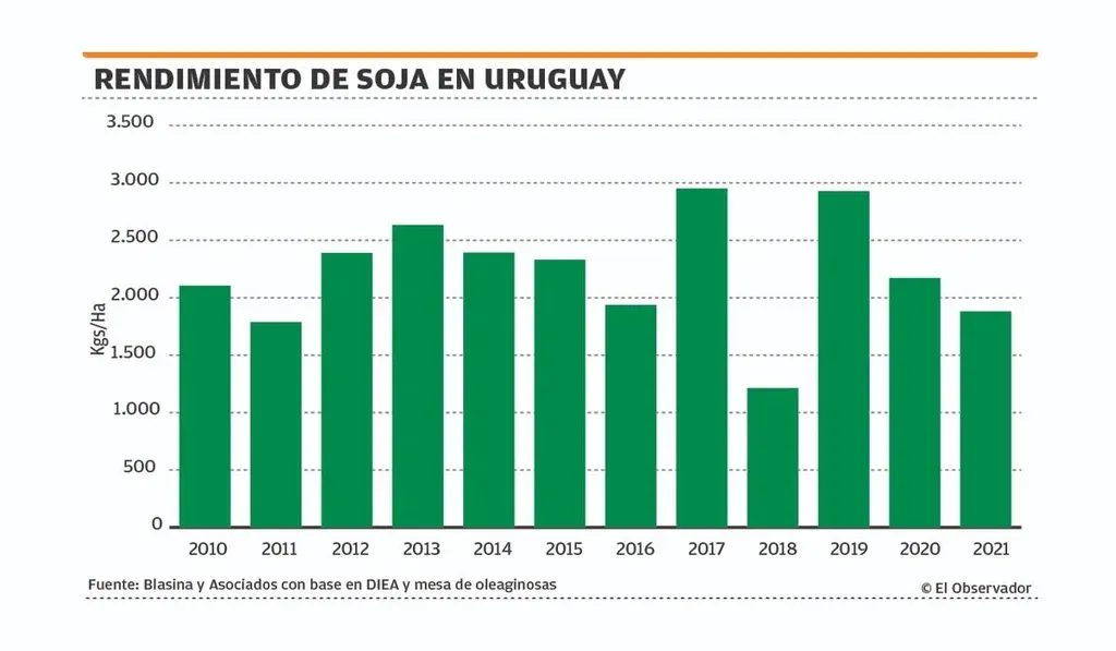 El verano pasado los cultivos de verano se vieron afectados por el déficit hídrico. La soja en Uruguay tuvo el segundo peor rendimiento en una década, un promedio de 1.881 kilos por hectárea. Aún es temprano para estimar los rindes de la próxima zafra; Carballal adelantó que en su empresa espera alcanzar los 2.300 kilos, pero esto no es aplicable a toda la producción.
