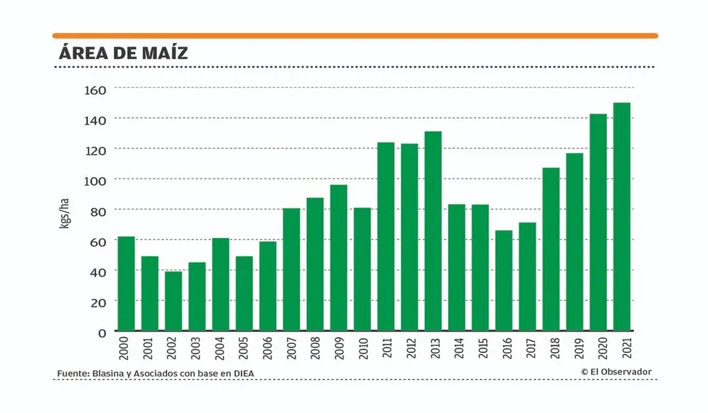 El área maicera viene creciendo y de las 142.624 has del año pasado se puede llegar a 150 mil has en esta siembra.