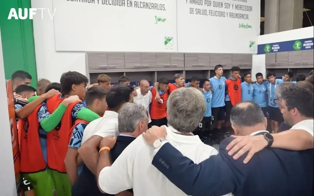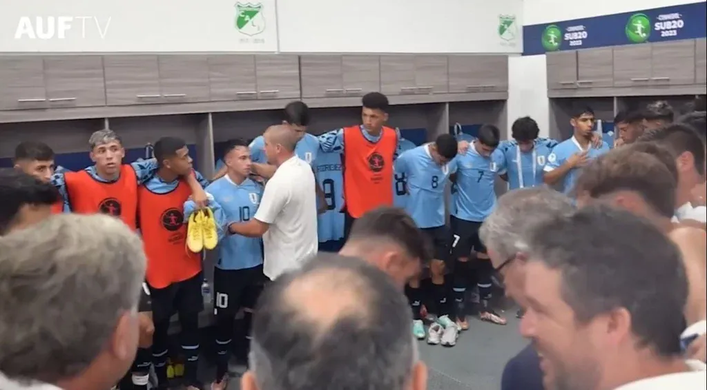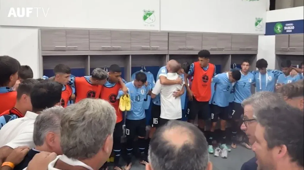 Diego “Ruso” Pérez, ayudante técnico de Marcelo Broli en la selección uruguaya sub 20 que juega el Sudamericano de Colombia, abrazó y le dijo palabras a los jugadores en la previa del partido ante Venezuela de este martes que la celeste ganó por 3-0.