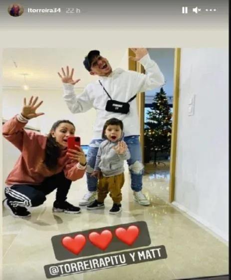Lucas Torreira, volante del Atlético Madrid, también se tomó una foto con el arbolito de navidad y la publicó en sus historias de Instagram.