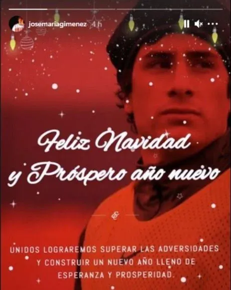 Instagram Lo mismo hizo su compañero de equipo Josema Giménez escribió, quien colgó el siguiente mensaje: "Unidos lograremos superar las adversidades y construir un nuevo año lleno de esperanza y prosperidad".