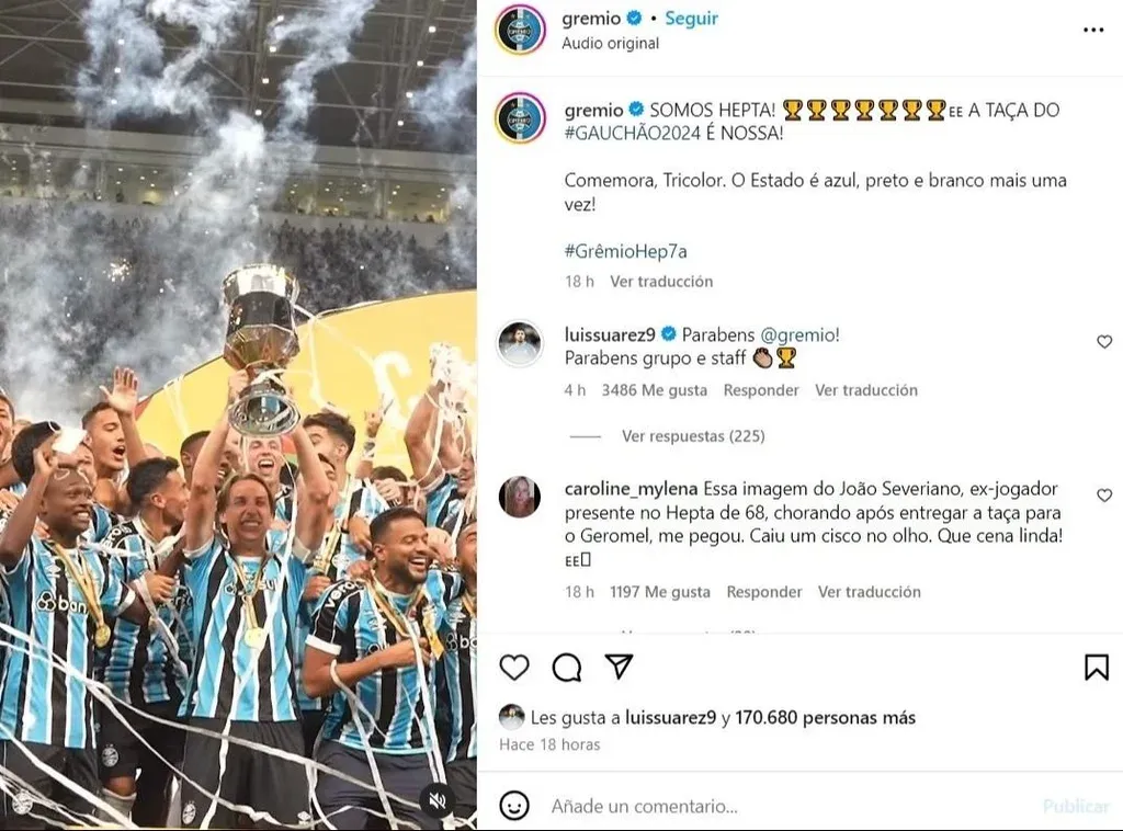 El saludo de Luis Suárez a Gremio por el logro del Torneo Gaúcho
