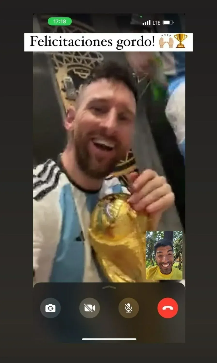En una historia de Instagram que subió el delantero celeste, se ve que el uruguayo le hizo una videollamada a Messi, quien tiene en sus manos el trofeo.