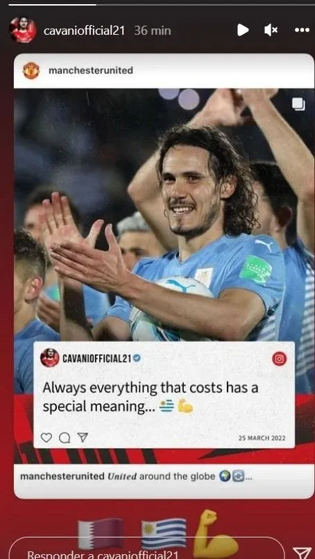 El saludo de Manchester United a Cavani por la clasificación a Catar, y la respuesta del delantero