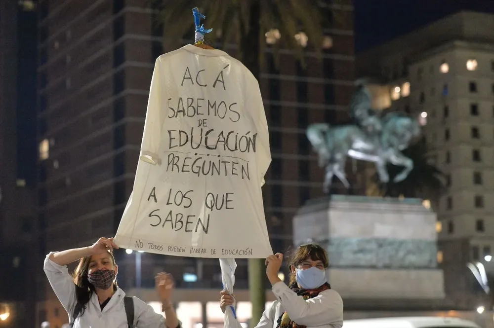 "Todo ciudadano tiene derecho a la libertad de expresión. En este caso, no podían manifestarla dentro del recinto escolar porque era una proclama que las docentes saben que era la manifestación personal, que pueden tener el gremio, que tiene derecho a tener, en contra de la reforma curricular", sostuvo la directora general de Primaria, Olga De las Heras en una rueda de prensa en enero.