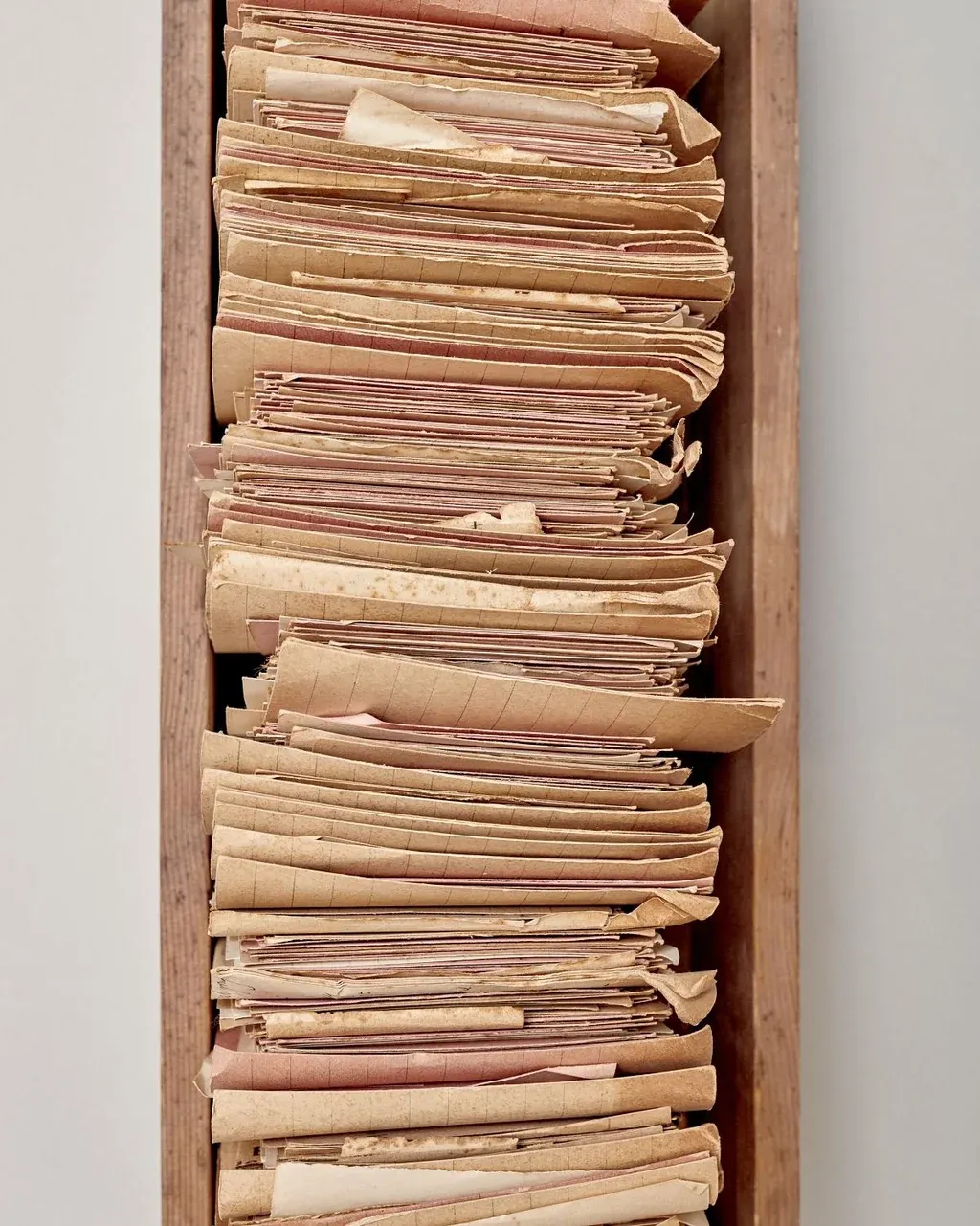 Ahora se revela por primera vez e incluye sus colecciones compiladas durante la posguerra: sellos de Hitler y artículos de propaganda antisemita. Una carpeta gruesa está llena de cientos de poemas y canciones antes desconocidos que los judíos compusieron en los guetos y los campos de concentración, los cuales transcribió de voz de los sobrevivientes. Algunos artículos son más viscerales, como un pedazo de cuero del zapato de su hijo muerto.