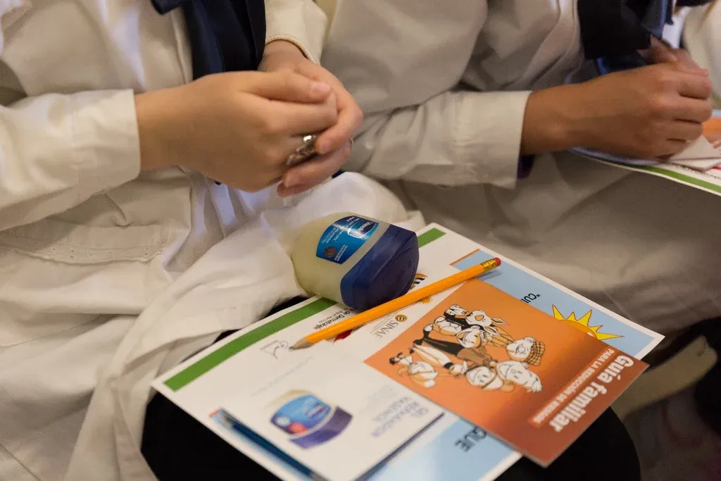 “¿Y Azucena donde está? será posible que siempre llega tarde, es tan irresponsable!”, dice la doctora en cuidados de la piel en la escuela N° 16 "Homero Grillo" de Villa del Rosario.