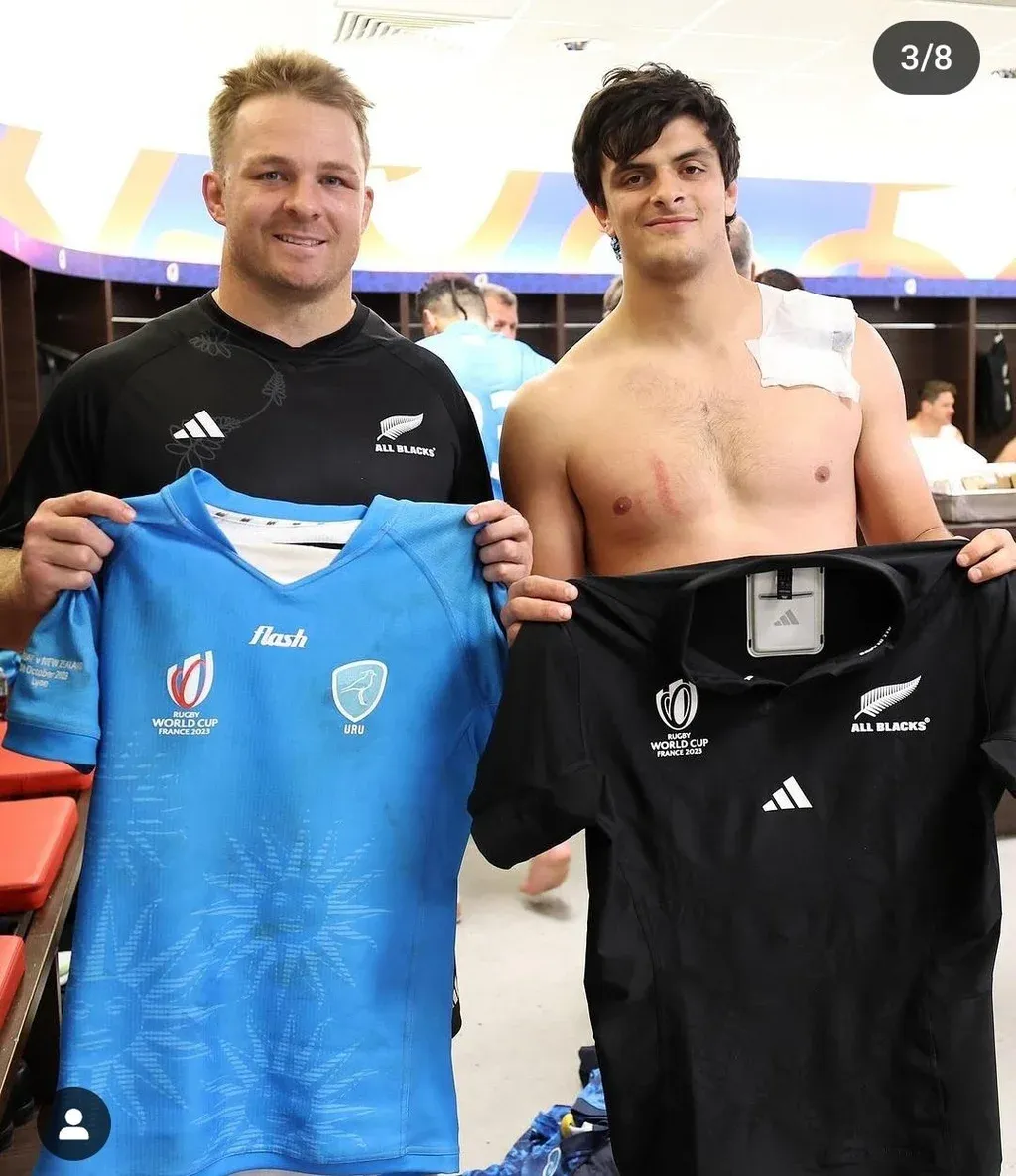 Tras la victoria de Nueva Zelanda 73-0 ante los Teros, los All Blacks fueron al vestuario uruguayo a saludar, en una especie de improvisado tercer tiempo.