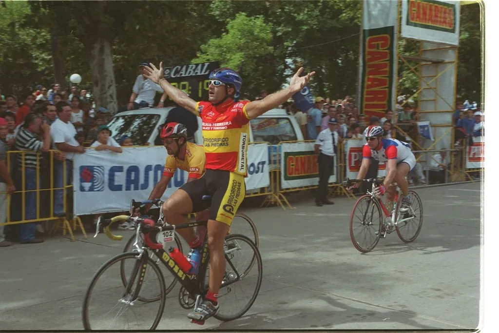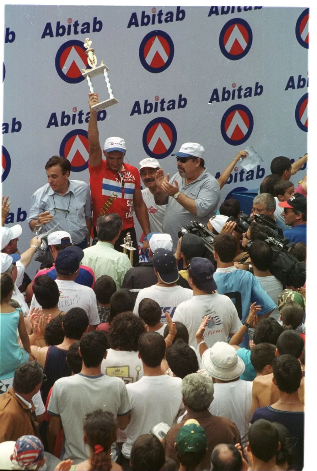 El Observador Bare en uno de sus 19 triunfos en la Vuelta Ciclista, en el año 2002