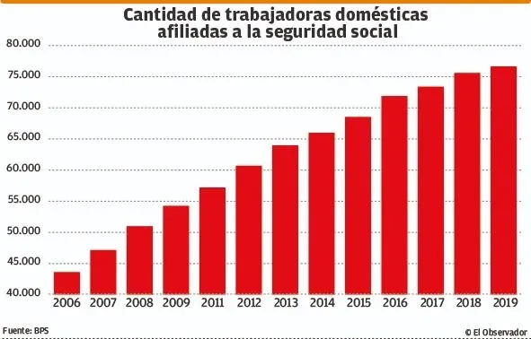 El informe del BPS sostuvo que con el paso de los años un “sector especialmente vulnerable, constituido especialmente en su amplia mayoría por mujeres, ha logrado el reconocimiento normativo de sus derechos, los cuales se equiparan al del resto de los trabajadores y trabajadoras”.