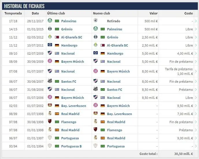 Dos años después, en 2009, finalizó el préstamo y Zé Roberto pasó de Bayern a Nacional el 30 de junio. A los pocos días, el 2 de julio de ese año, el brasileño pasó de los tricolores a Hamburgo, en un costo de 4 millones de euros, en su último vínculo con los albos, monto que metió a los albos en el ranking que hoy encabeza Cristiano Ronaldo.