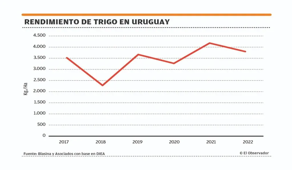 En la cosecha pasada, con 4.181 kilos por hectárea, fue alcanzado el máximo rendimiento histórico del grano, que nunca había superado los 4.000 kilos en Uruguay.