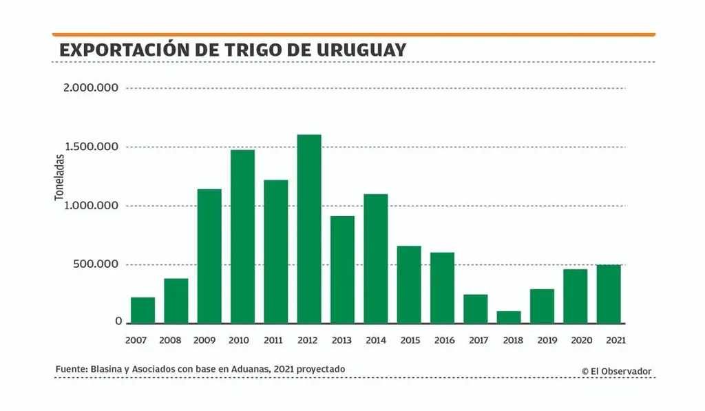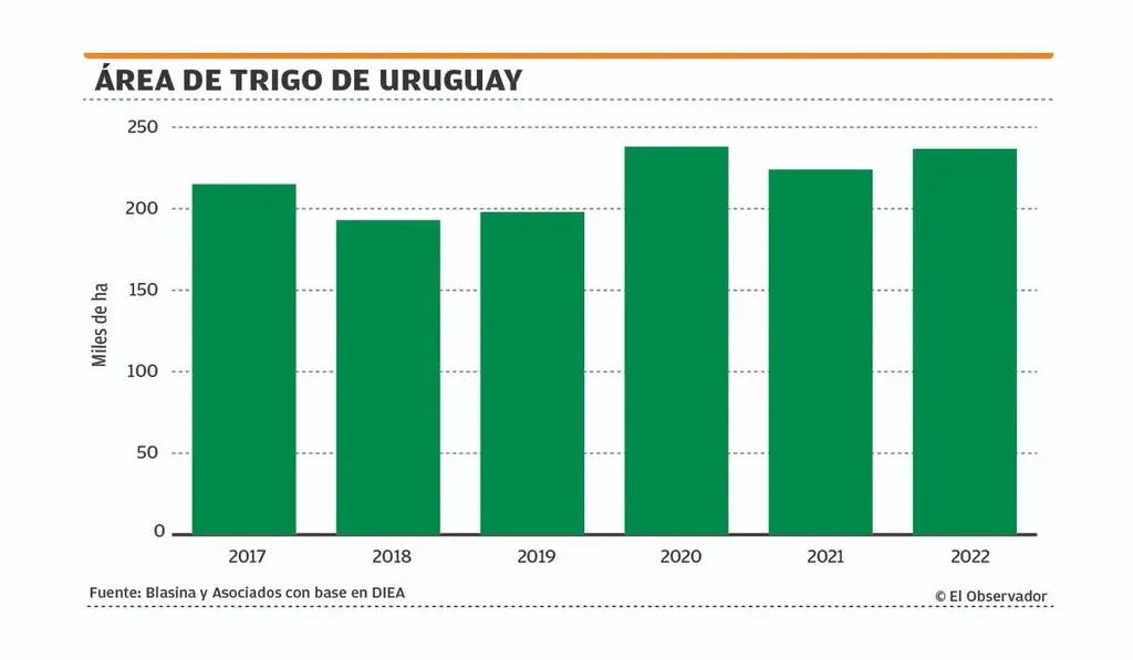 El área de trigo en Uruguay viene en crecimiento y con buena chance de tener un envión más, dadas las fuertes necesidades que hay en el mundo por el cereal. Los graves daños que sufrió el trigo en Rusia, Estados Unidos y Canadá provocaron el salto de precios de los habituales US$ 200 por tonelada a las actuales referencias y las muy buenas cosechas del hemisferio Sur (en Australia y Argentina) no serán suficientes para calmar a los mercados, hasta agosto del año próximo en el mejor de los escenarios.