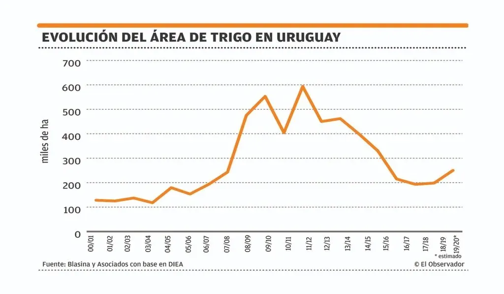 En 2018/2019 alcanzó las 198.000 hectáreas, algo por debajo de las estimaciones iniciales, con un rendimiento de 3.667 kilos por hectárea, de acuerdo a la Encuesta Agrícola 2018 de DIEA, publicada este enero.
