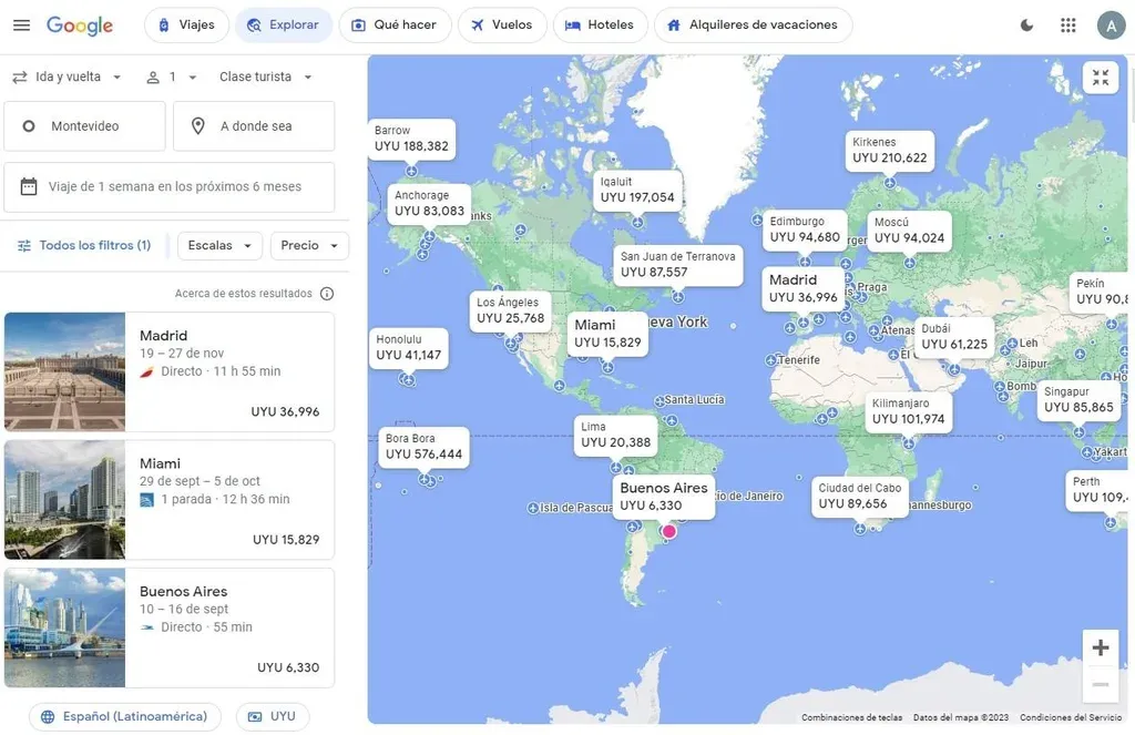 Google Flights permite buscar precios y comparar con diferentes filtros.