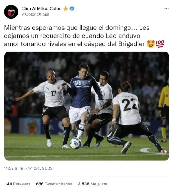 El club argentino Colón de Santa Fe le dedicó un mensaje a Lionel Messi, figura de la selección albiceleste en el Mundial Qatar 2022, con una imagen de un partido ante Uruguay, que llevó a que hinchas uruguayos se burlaran de la publicación.