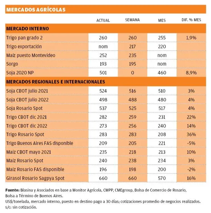 Las importaciones chinas fueron reducidas de 98 a 97 millones de toneladas para el 2020/21 y de 102 a 101 millones para 2021/22.