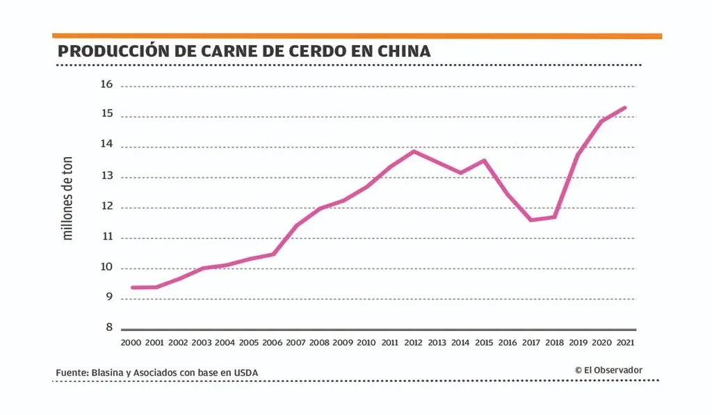En 2019 el stock de cerdos tocó un piso de 440 millones de cabezas, en 2020 subió a 490 millones y en 2021 aumentará un 12% a 550 millones –aún muy por debajo de los 688 millones de cerdos que había previo a la peste porcina–.