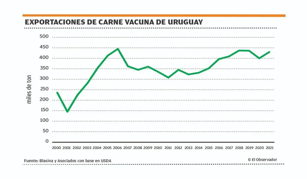 Uruguay, se visualiza, crecerá en 2021 pasando de 400.000 toneladas a 430.000 toneladas, un aumento de 8%.