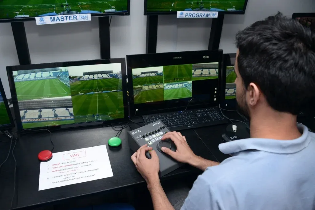 El VAR está a cargo de tres jueces de apoyo, uno principal y dos de líneas, además de los cuatro que actúan en el campo de juego: el juez, los dos líneas y el cuarto árbitro.