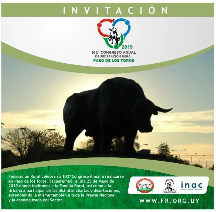 Homenajes, elección de autoridades, tres ejes temáticos de urgente consideración para los productores del medio rural y la presencia de precandidatos a la Presidencia de la República serán aspectos salientes del 102° Congreso de la Federación Rural (FR), que se hará el viernes 24 y el sábado 25 de mayo con la Asociación Rural de Paso de los Toros (ARPT) como anfitriona, en una zona de Tacuaremó de alto valor productivo que no era sede de esta clásica actividad desde la primera mitad del siglo pasado.