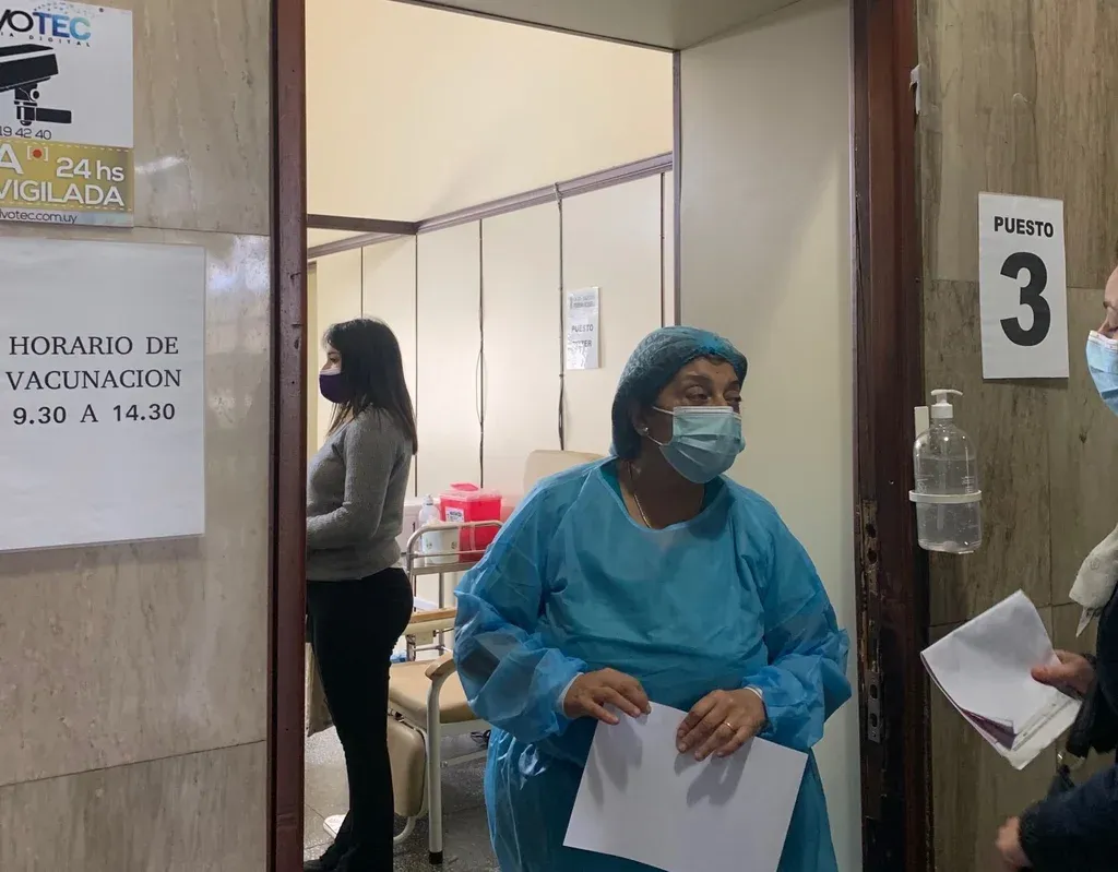 El vacunatorio exclusivo para embarazadas del Hospital Pereira Rossell "estuvo mucho más movido" a primera hora, afirmó Victoria Acosta, la encargada. Sobre el mediodía son pocas las embarazadas que esperan su turno. Por disposición del Ministerio de Salud Pública, vacunan con Pfizer a toda mujer de más de 14 semanas de gestación. No se necesita agendar un horario ni atenderse en el hospital.