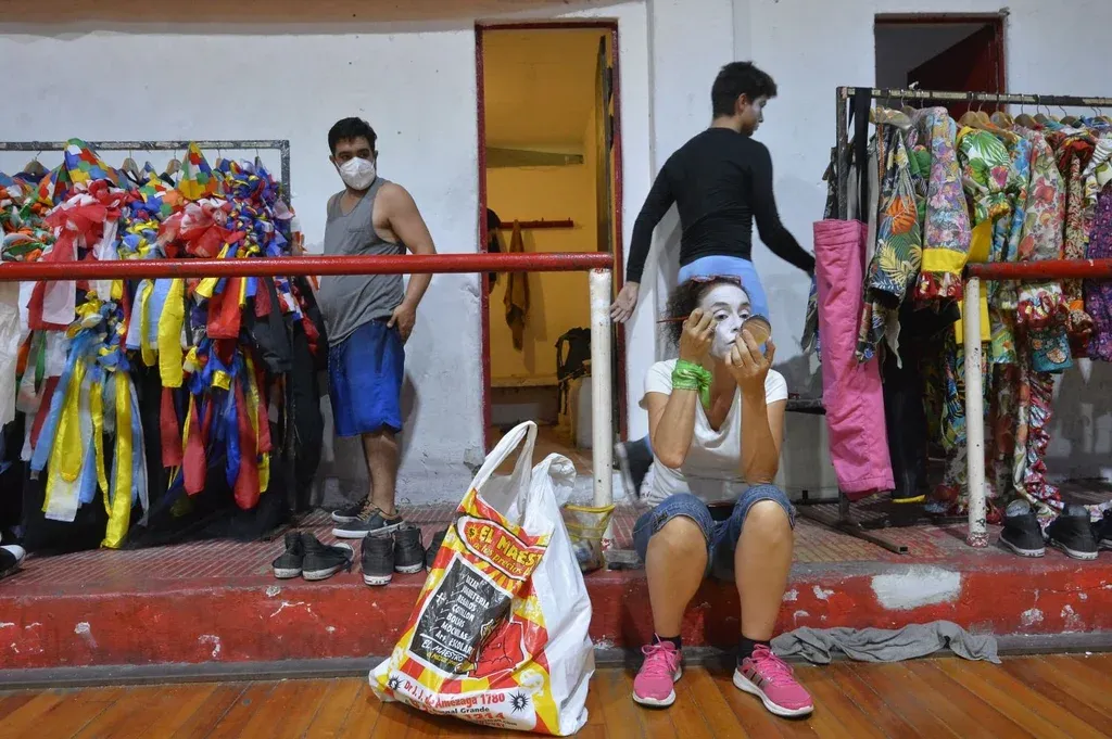 El público ahora tiene un celular en la mano y eso genera cosas. Es un factor que puede distraer cuando estás en escena y eso por suerte no ha pasado mucho. Era uno de mis miedos. La fiesta también tiene un streaming que no tenía. Me bajo del tablado y me veo en Instagram, es re fuerte. Está bueno porque me corrijo cosas (ríe). Y los comentarios: la gente antes hacía la bajada en el tablado y ahora no lo puede hacer, pero tiene otra herramienta que son las redes sociales. Por suerte pila de cariño y de alegría, (me dicen) que fue lindo que vuelva al carnaval. Y que alguien se acordara era otra de mis expectativas porque muchos de los murguistas con los que salgo tenían 5 o 6 años cuando yo salía. Fue una acto de fe y de confianza que me dejaran entrar acá, porque ni siquiera hay registros de video. Veo menos niños en los tablados y eso me ha impactado. Me encanta ver niños mirando el espectáculo y me pasa más en los escenarios barriales, que están sentaditos cerquita del escenario. Cambia que están mis hijos, y eso lo cambia todo. Si no están en el momento yo imagino que están ahí. Después entender que es un privilegio ir al tablado y es una pena que lo sea, debería ser una fiesta más masiva. Hay razones sanitarias y económicas, pero los tablados no están llenos. Y en los medios de aire está más presente que hace 20 años: hay bloques de carnaval en los informativos, hay más cobertura y eso está bueno.