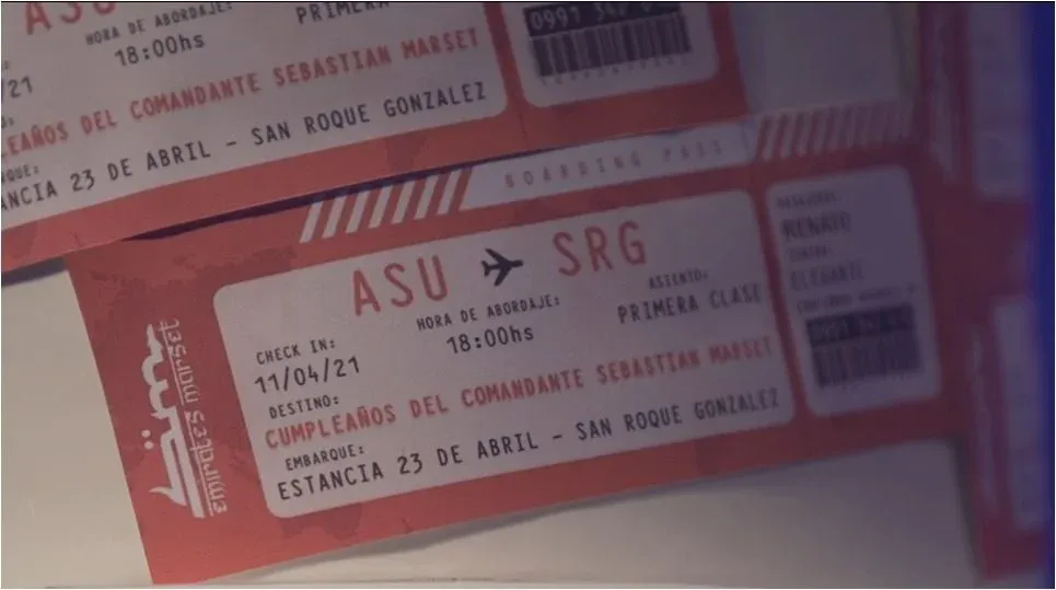 "Cumpleaños del comandante Sebastián Marset", decía la invitación, que simulaba ser un boarding pass de la aerolínea Emirates Marset.