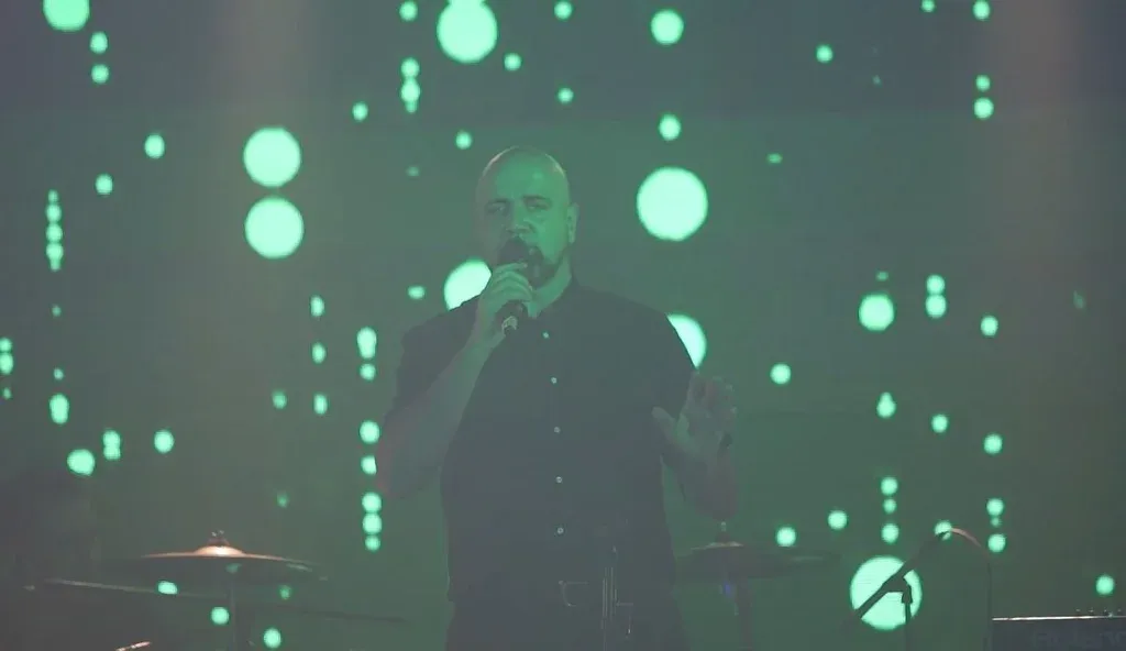 El cantante de Los Pikantes en plena actuación
