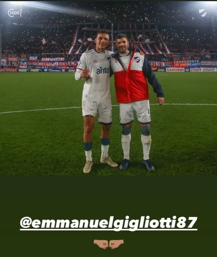 El argentino tomó esa misma foto y escribió: "Esta foto la guardo para dentro de unos años", alentando un futuro prometedor del jugador que comenzó su carrera en Wanderers, pasó a Danubio y en 2020 se unió a Nacional.
