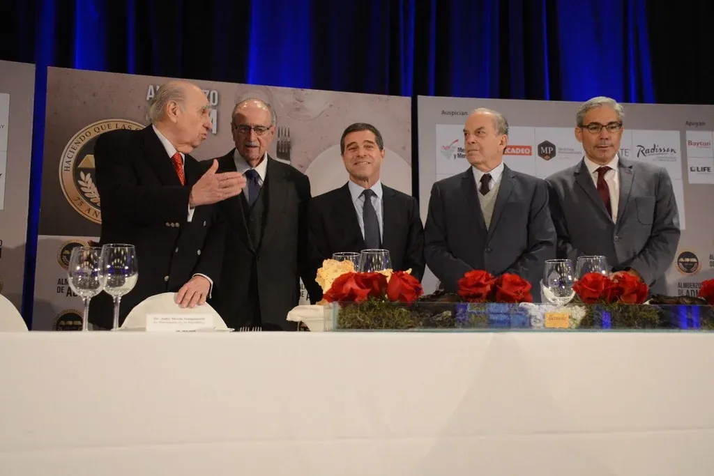 El economista eligió al expresidente Julio María Sanguinetti y su candidato a vicepresidente, Robert Silva, como compañeros en la mesa de cabecera en la que también estuvieron las principales autoridades de ADM.