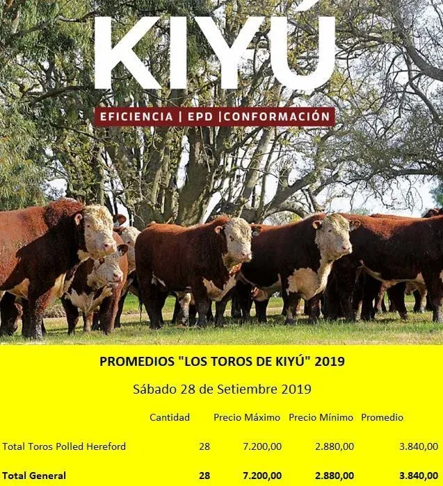 Un precio promedio de US$ 3.840 alcanzó la 43ª venta de los Toros de Kiyú, realizada este sábado 28 en la Central de Pruebas de la Sociedad de Criadores de Hereford del Uruguay (SCHU), ubicada en el departamento de San José.
