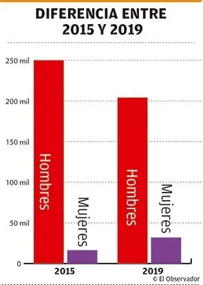 En cambio, las mujeres crecieron respectivamente de 16.506 a 32.123 en ese lapso.