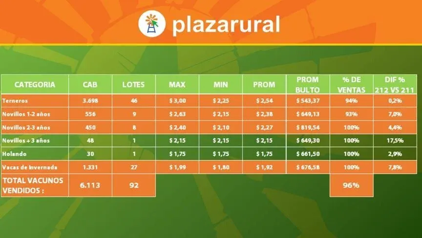 "Todas las categorías volvieron a subir en el primer remate donde se puso en práctica el seguro gratis para todos los ganados vacunos que Plaza Rural ofrece a sus clientes", señaló a modo de conclusión tras el cierre del primer día de ventas.