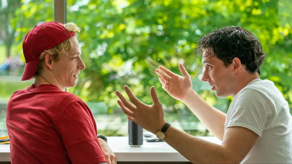 En los papeles, Desafiantes sigue los derroteros de tres tenistas a lo largo de varios años. Tashi Duncan (Zendaya) es una implacable promesa del deporte a la que una lesión grave le borra cualquier posibilidad de futuro en una cancha. Art (Faist) y Patrick (O’Connor) son dos amigos casi hermanos que buscan llegar al profesionalismo. El encuentro entre los tres modificará los caminos de todos: Tashi se casará con Art y, como su entrenadora, lo convertirá en una máquina del tenis que aúna lo mejor de Federer y Djokovic, la elegancia y la potencia; Patrick se convertirá en un buscavidas que mendiga desayunos y que compite en circuitos medios del profesionalismo, los llamados Challengers. No hay spoilers acá: la película comienza cuando los tres, después de varios años, se cruzan en uno de estos torneos. Art, en horas deportivas bajas, busca ganar confianza para disputar el US Open; Patrick, en tanto, necesita el dinero del premio para dejar de dormir en el auto.