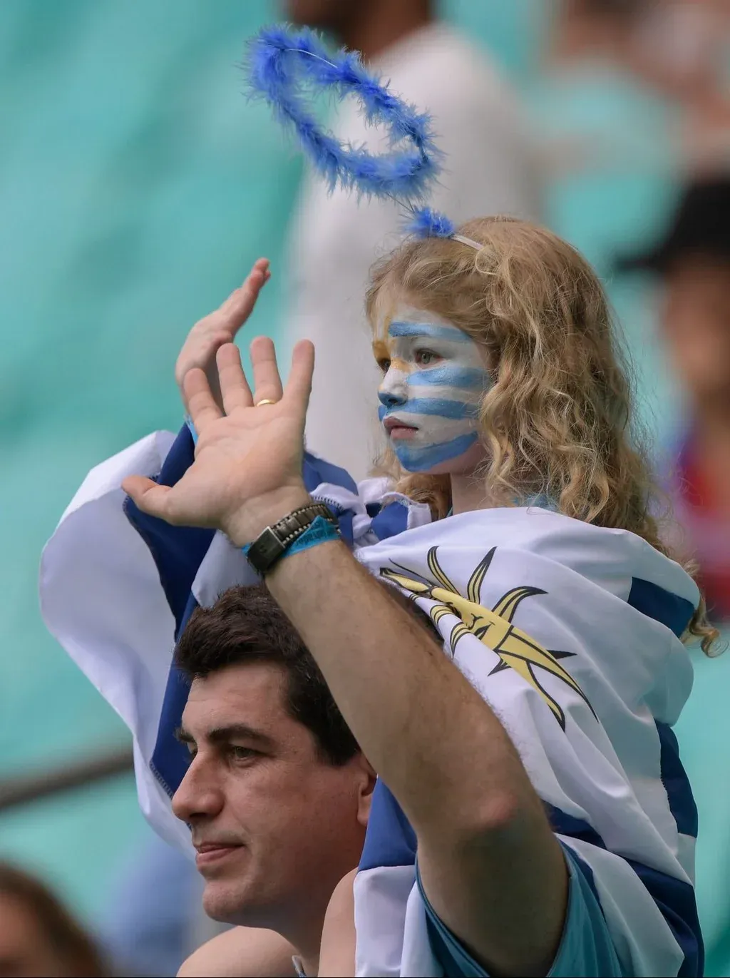 Hubo barras que están desde el primer partido y que querían seguir hasta la final en el Maracaná. Uno de ellos, sin remera, se había pintado el cuerpo y la cara con las estrellas y los colores de Uruguay.