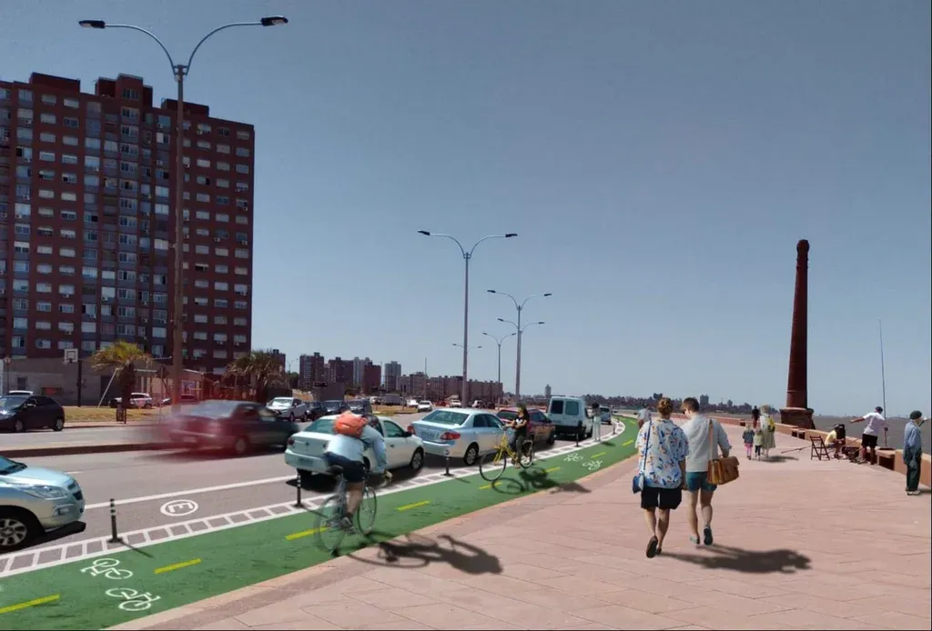 A diferencia de la ciclovía de 18 de Julio, que va por el medio de la avenida, las sendas de la nueva ciclovía irán contra la vereda sur de la Rambla, donde actualmente está el carril de estacionamiento. Los autos podrán parar al costado de la ciclovía, tal como ocurre en el tramo de la calle Carlos Quijano, que conecta con la ciclovía de 18 de Julio.