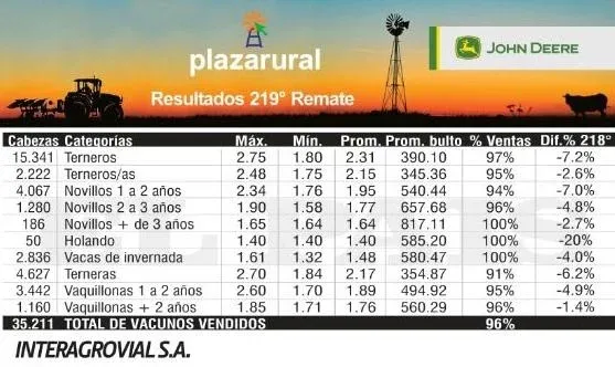 Hasta el jueves 22 se llevaban vendidos 35.211 vacunos, es decir, el 96% de la oferta. Según lo informado a El Observador las ventas han fluido de muy buena manera, lo que deja al equipo muy conforme no solo por haber reunido un enorme volumen de ganado, sino que también porque lo ha logrado dispersar con éxito.